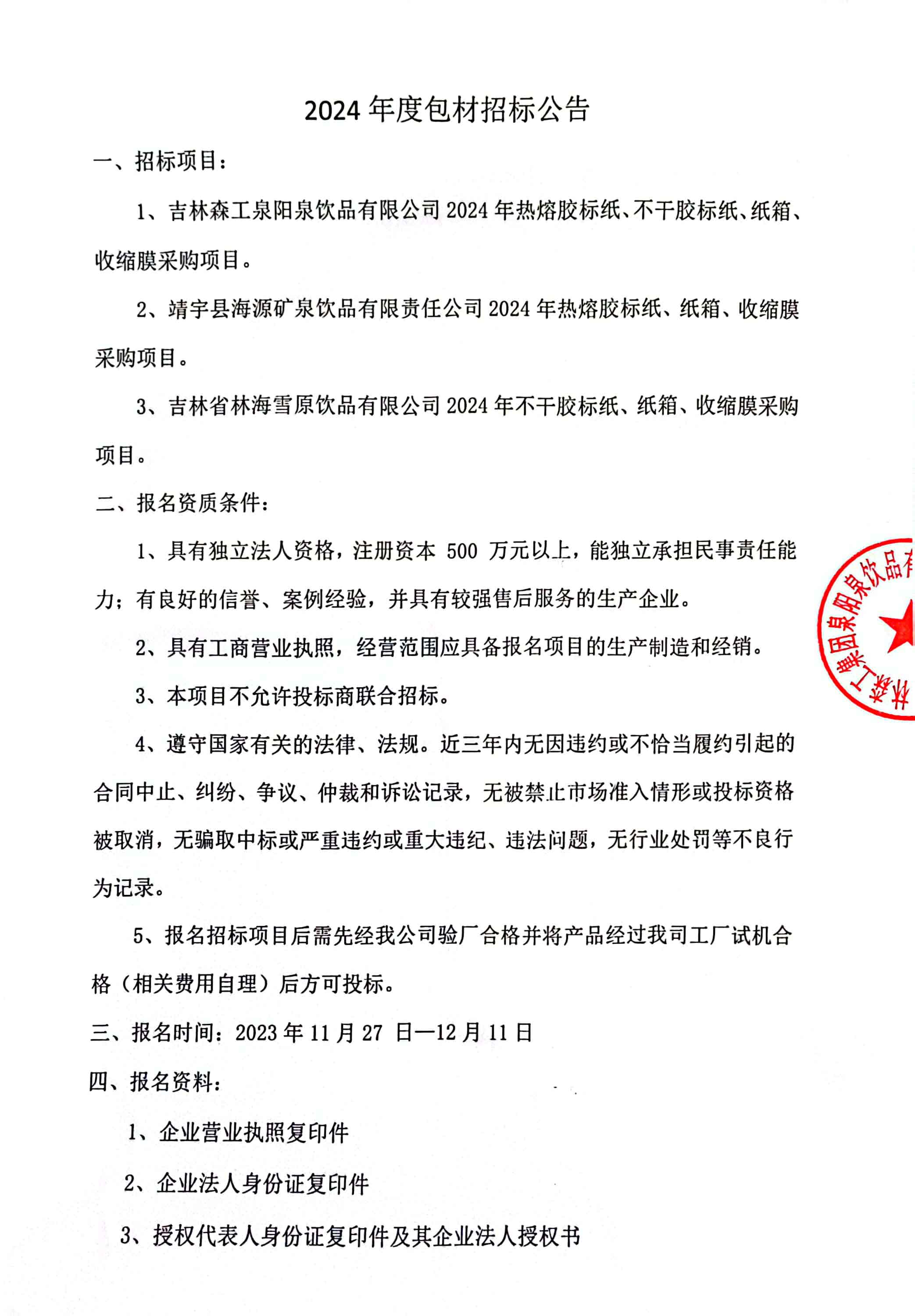 2024年包材招標(biāo)公告
